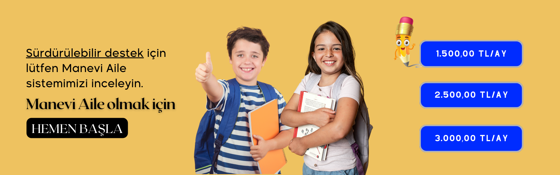 Bu sistem, düzenli desteklerle büyük farklar yaratmanın en etkili yoludur. Çok yüksek bütçeler ayırmanıza gerek kalmadan, binlerce çocuğumuzun eğitimlerine devam edebilmesine destek olursunuz.